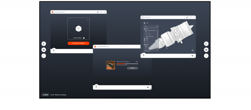 Shariiing Advanced introduit une vignette 3D dédiée pour visualiser vos modèles en temps réel. Compatible avec les fichiers GLB (légers et universels), cette fonctionnalité permet d’importer vos fichiers depuis l’explorateur intégré ou l’App Convertisseur CAO. Résultat : des sessions collaboratives plus immersives et une qualité d’affichage optimisée.